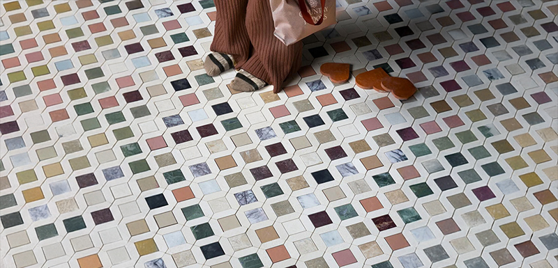 Our mosaic customization program allows you to create your very own color ways with any of our water jet design offerings.