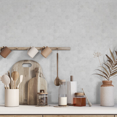 A design pairing big and small hexagon tiles looks impressive once installed. Suppose you are looking for less traditional ideas for your kitchen project. In that case, our hexagon marble backsplash adds a unique and quirky element. Check out our Avalon Polished Hexagon Marble Mosaic 10 3/8×12, for example.