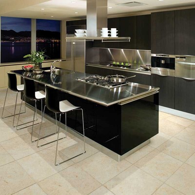 Stone tiles are very welcoming in the heart of the homeroom –– the kitchen. A honed limestone floor like this Britannia Honed Limestone Tile can bring warmth and character to your kitchen and house.
