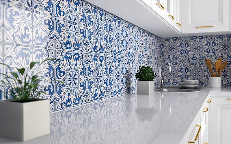 At the very top of this post, you can see a bold approach from our Miradouro Classic Ceramic Collection. This material takes inspiration from classic Portuguese blue tile motifs and pushes the reset button for 21st-century style.