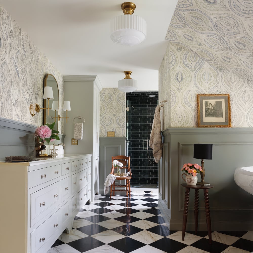 - For a bold statement, use checkerboard marble walls in living rooms, dining areas, or even bathrooms. It creates a dramatic backdrop that can elevate the overall aesthetic of the room. Bathroom walls, especially in commercial spaces like restaurant bathrooms with Parisian Bistro themes or Retro style look good with black and white checkerboard tiles.