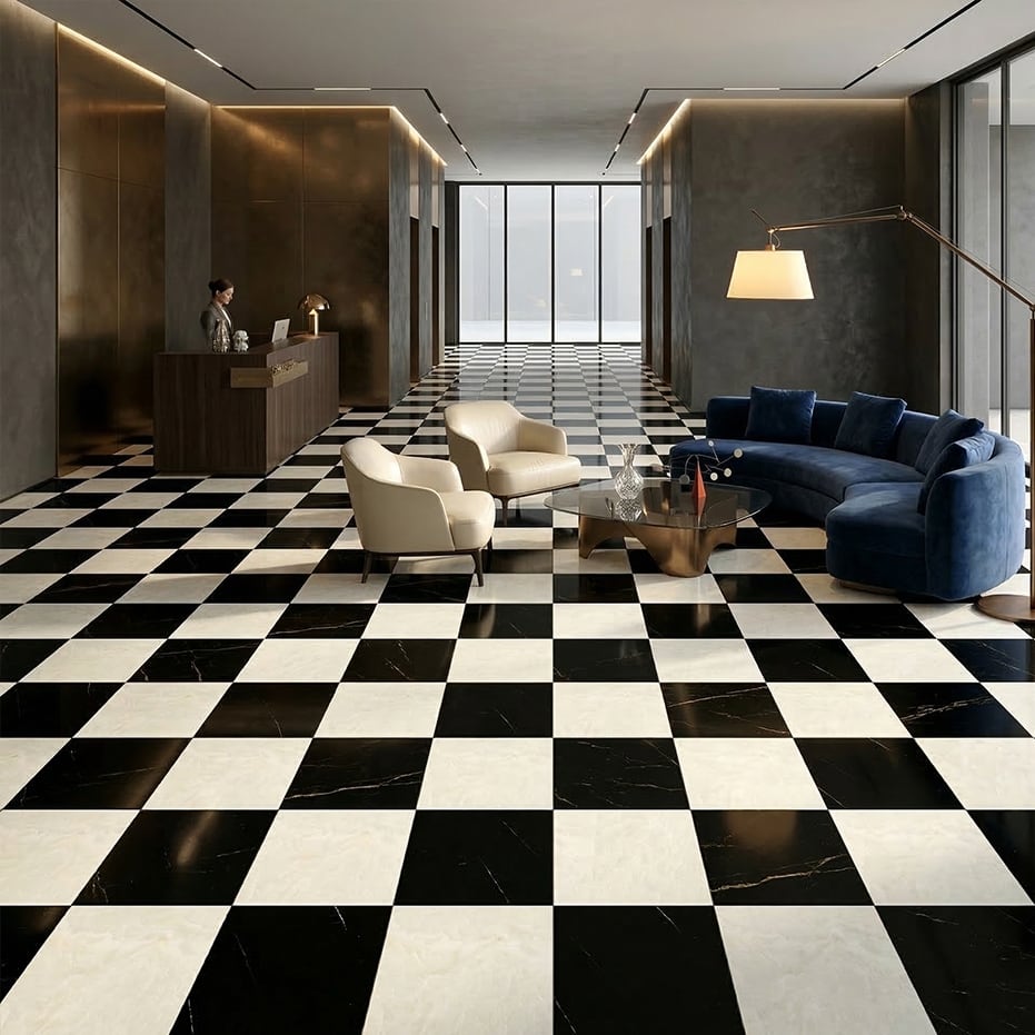 - The checkerboard pattern exudes a sense of classic elegance and sophistication. It is perfect for creating a statement floor in entryways, living rooms, or dining areas.