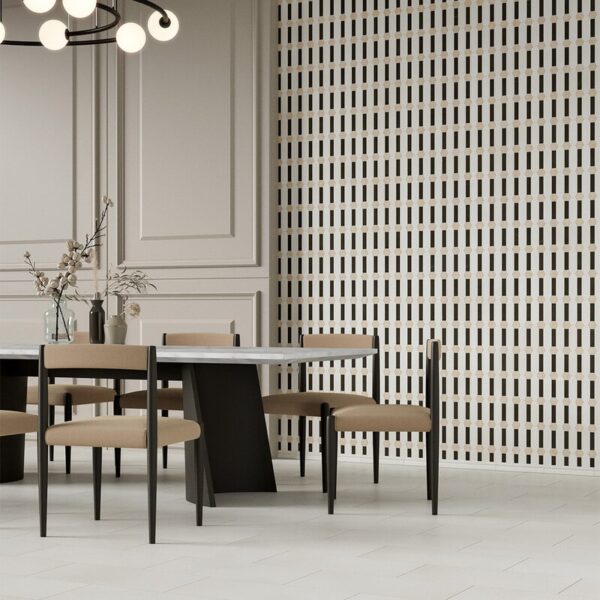 Of course, a wood look floor tile is a must-have for any fall interior design, a choice that reinforces the entire earthy color palette. This floor, which evokes the sensation of freshly baked bread and warm tea just by looking at it, is the dining room floor tile option that will most enhance the intimacy of your family gatherings. Let’s not forget that it’s a sustainable option that never goes out of style.