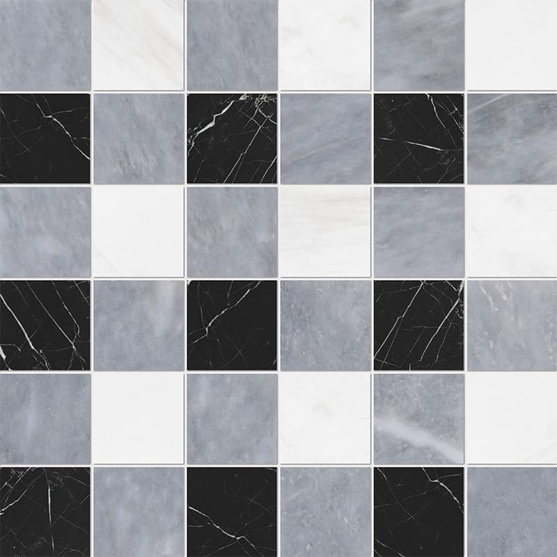 Allure Light, Snow White, Black Honed 2x2 Marble Mosaic