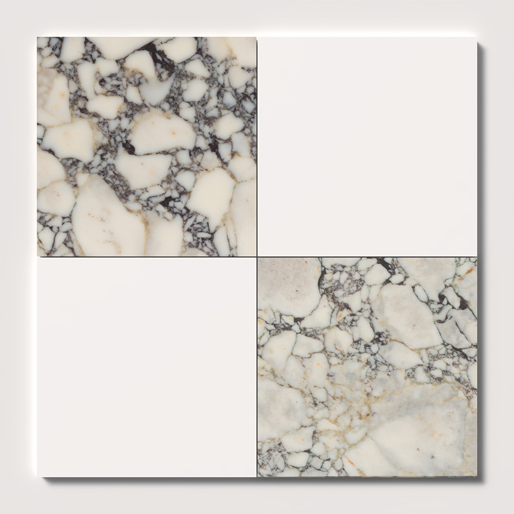 Aspen White, Calacatta Picasso Honed Checkerboard Pattern Marble Tile