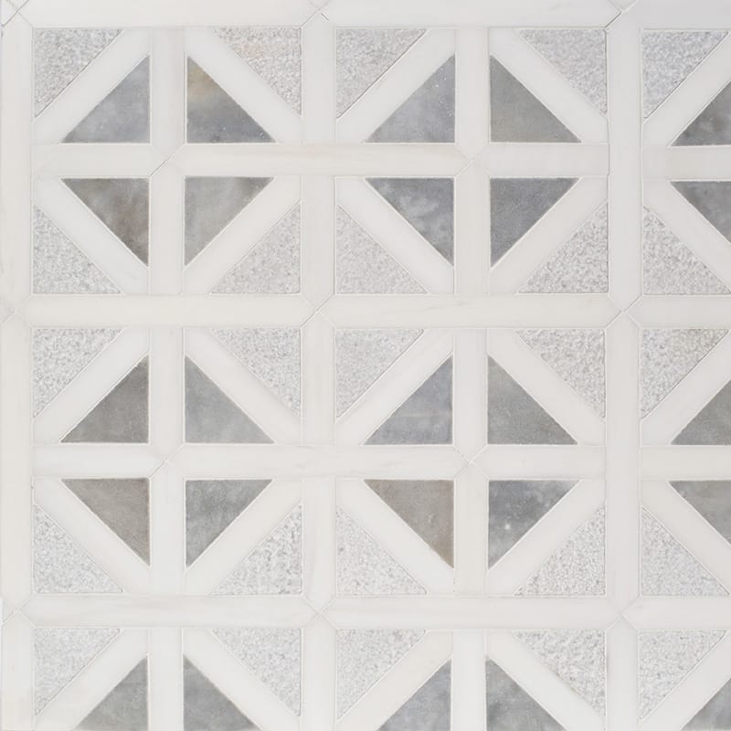 Avenza, Snow White Multi Finish Classic Lattice Marble Mosaic