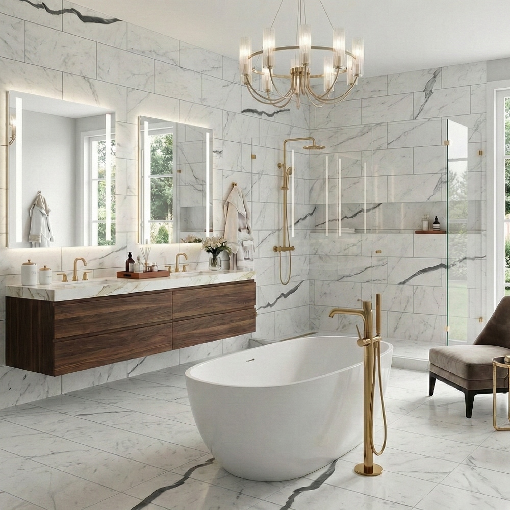 Renovating your home is easier than ever with Bianco Statuario Matte Marble Look Porcelain Tile. From bathrooms to kitchens, you can make any location look perfect.