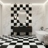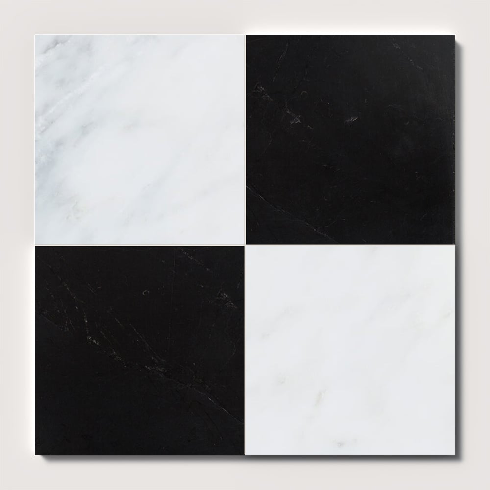 Black, Calacatta Bella Honed Checkerboard Pattern Marble Tile