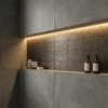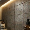 Each 4x8 tile features an intricate grid overlay with tonal variations in charcoal gray, muted brown tiles , deep navy, and olive accents. The semi-matte finish softens the urban pattern, creating a balanced look that is both industrial and artisanal. When installed, the tiles form a cohesive, richly textured surface that adds depth, movement, and personality to any wall or vertical space. This is a statement tile perfect for designers seeking a modern handcrafted aesthetic with a sophisticated edge.