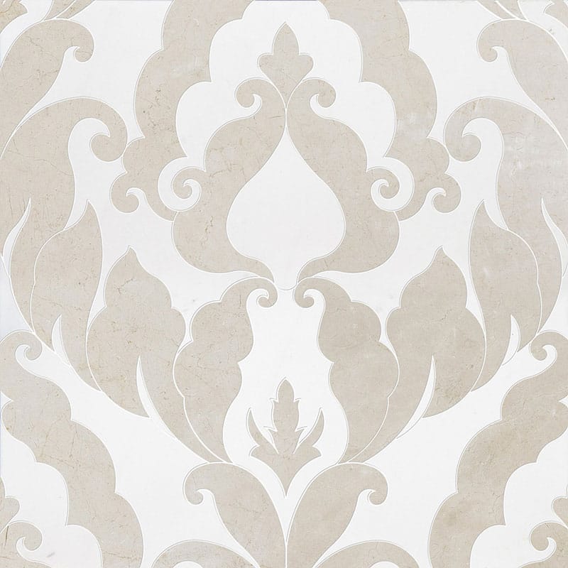 Crema Bella, Thassos White Or Aspen Whit Polished Rumi Marble Mosaic