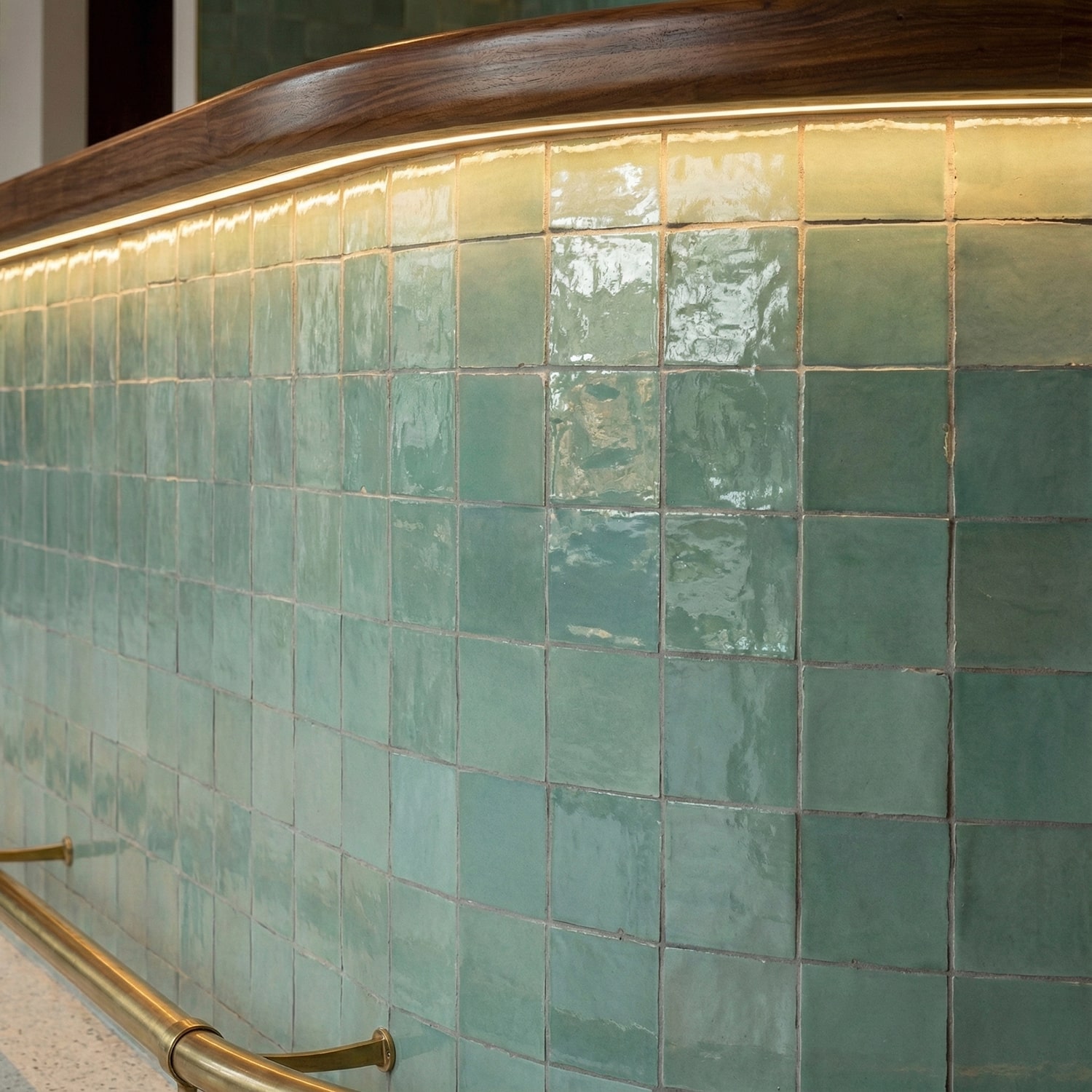 Finish: High-gloss zellige glaze with natural shade variation, slight undulation, and an artisanal handcrafted texture.