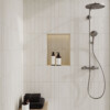 - Since variation of shades is an inherent characteristic of ceramic tile, mix tiles from several cartons as you set, for a blended effect.
