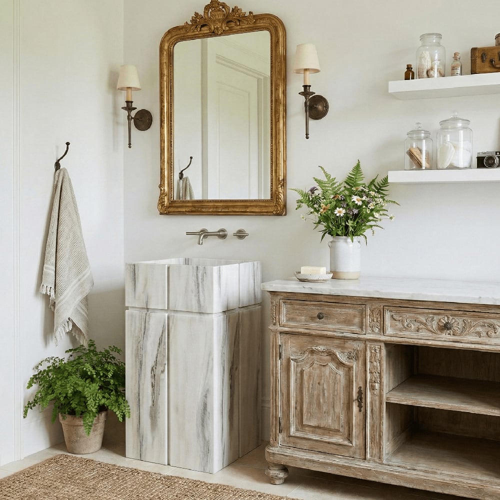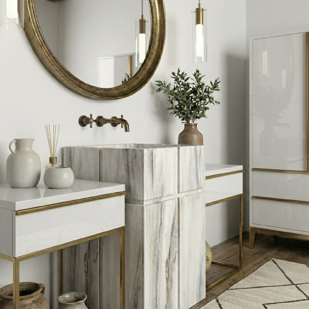 - Custom sizes and complimentary pieces may be available for steps, risers, vanity top, and countertop