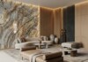 Variation of shades is an inherent characteristic of marble, stone and ceramic tile – mix tiles from several cartons as you set, for a blended effect. Begin installing tiles in the center of the room, one grid at a time. Finish each grid before moving to the next. Start with the first tile in the corner of the grid and work outward. Set tiles one at a time using a slight twisting motion. Don't slide tiles into place. Insert tile spacers as each tile is set, or leave equal joints between tiles. Fit perimeter tiles in each grid last, leaving 1/4" gap between tile and wall. Any rectangle porcelain should never be set in a running bond pattern, rather no more than a 1/3 overlap; the joint should be widened to 3/16" and use of a large unit porcelain mortar should be employed. When grid is completely installed, tap in all tiles with a rubber mallet or hammer and wood block to ensure a good bond and level plane. Remove excess adhesive from joints with a putty knife and from tile with a damp sponge. Do not walk on tiles until they are set (usually in 24 hours).