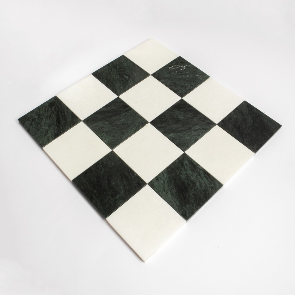 Thassos, Verde Lucia Honed 4x4 Checker board Marble Mosaic
