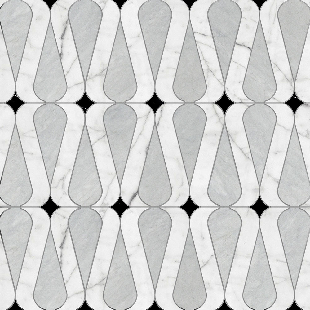 White Carrara, Avenza, Black Multi Finish Linon Waterjet Marble Mosaic